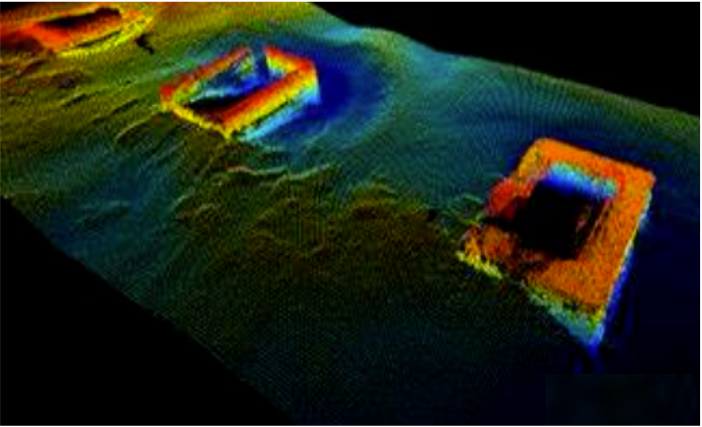 Multibeam sonar(MBES) is a type of active sonar system used to map the seafloor and detect objects in the water column or along the seafloor. The multiple physical sensors of the sonar – called a transducer array – send and receive sound pulses that map the seafloor or detect other objects. A multibeam arrayis usually mounted directly on the ship’s hull.