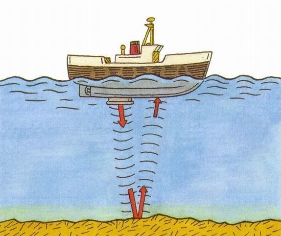SONAR, short for Sound Navigation and Ranging, is a tool that uses sound waves to explore the ocean. Scientists primarily use sonar to develop nautical charts, locate underwater hazards to navigation, search for and identify objects in the water column and on the seafloor such as shipwrecks, and map the seafloor itself. Sonar is used for oceanography because sound waves travel farther in the water than radar and light waves can.